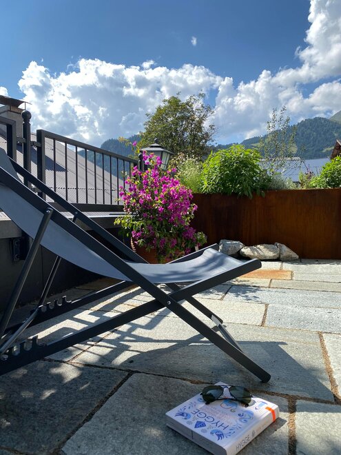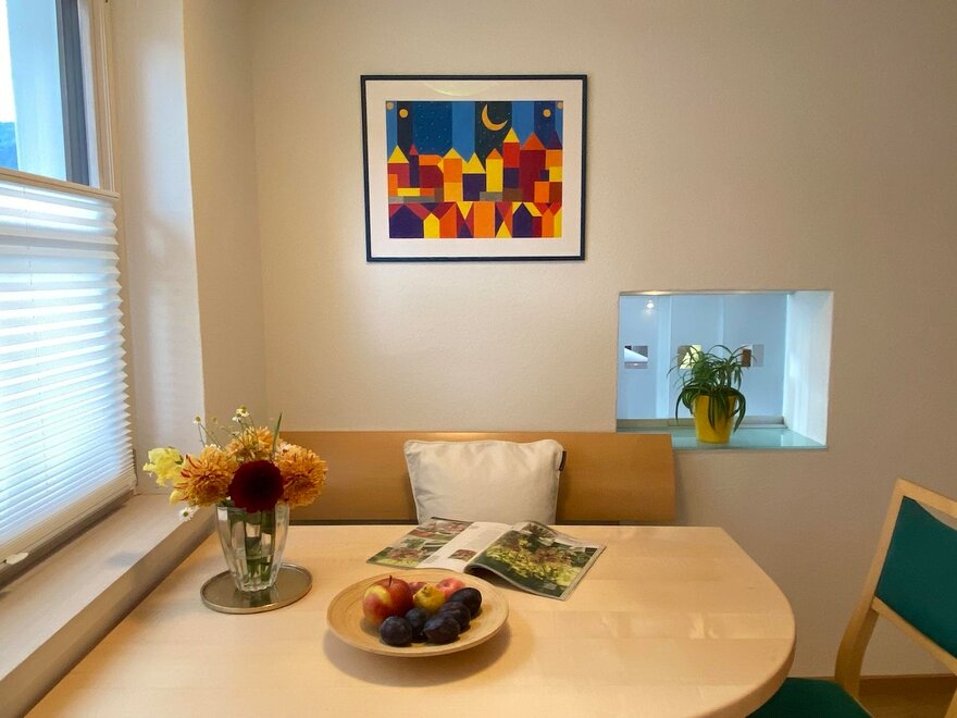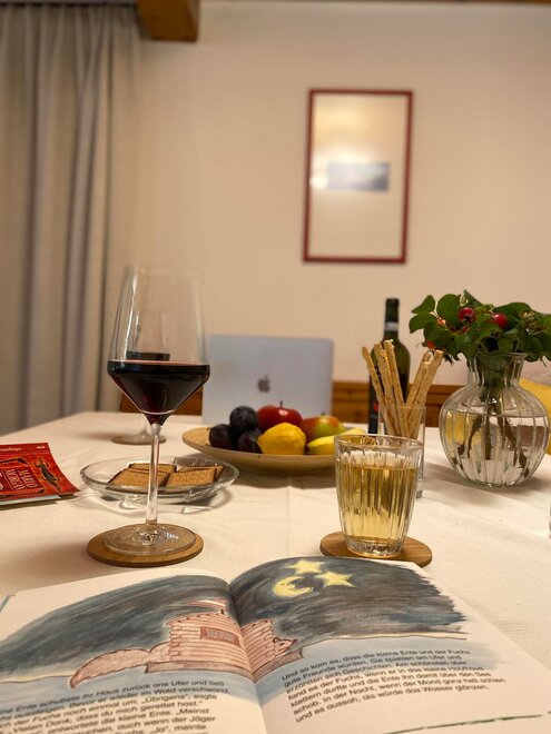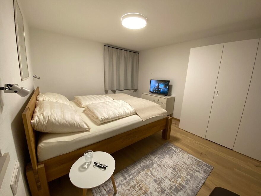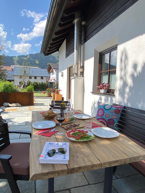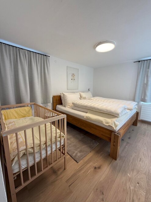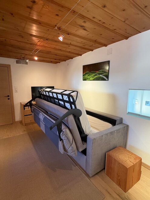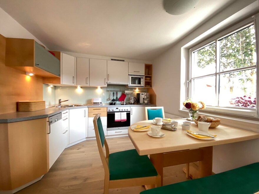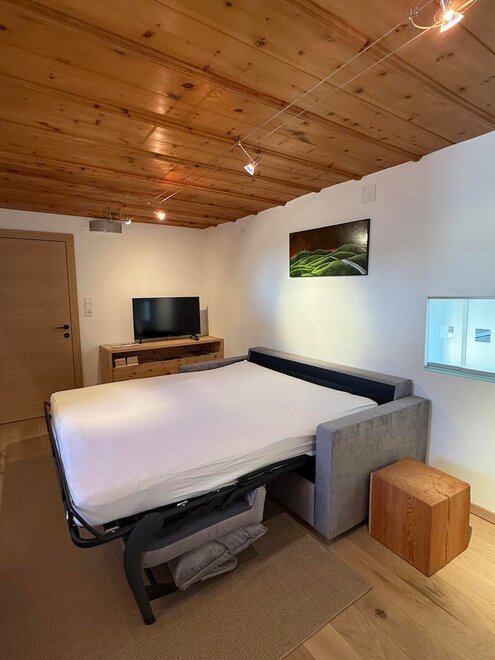 The apartment in the Schranz house is 60m2 in size. Separate dining kitchen, 1 bedroom, a pine room (also used as a living/sleeping room), and a small bathroom - all separate rooms. This creates a relaxing atmosphere. Oh yes, and a 30m2 private terrace with deck chairs, a garden bench with a large outdoor table... Fresh chives from Stefan, Walli, and Elisa's raised bed - that works too, if you’re missing that green flavor note while cooking. "All fees included"