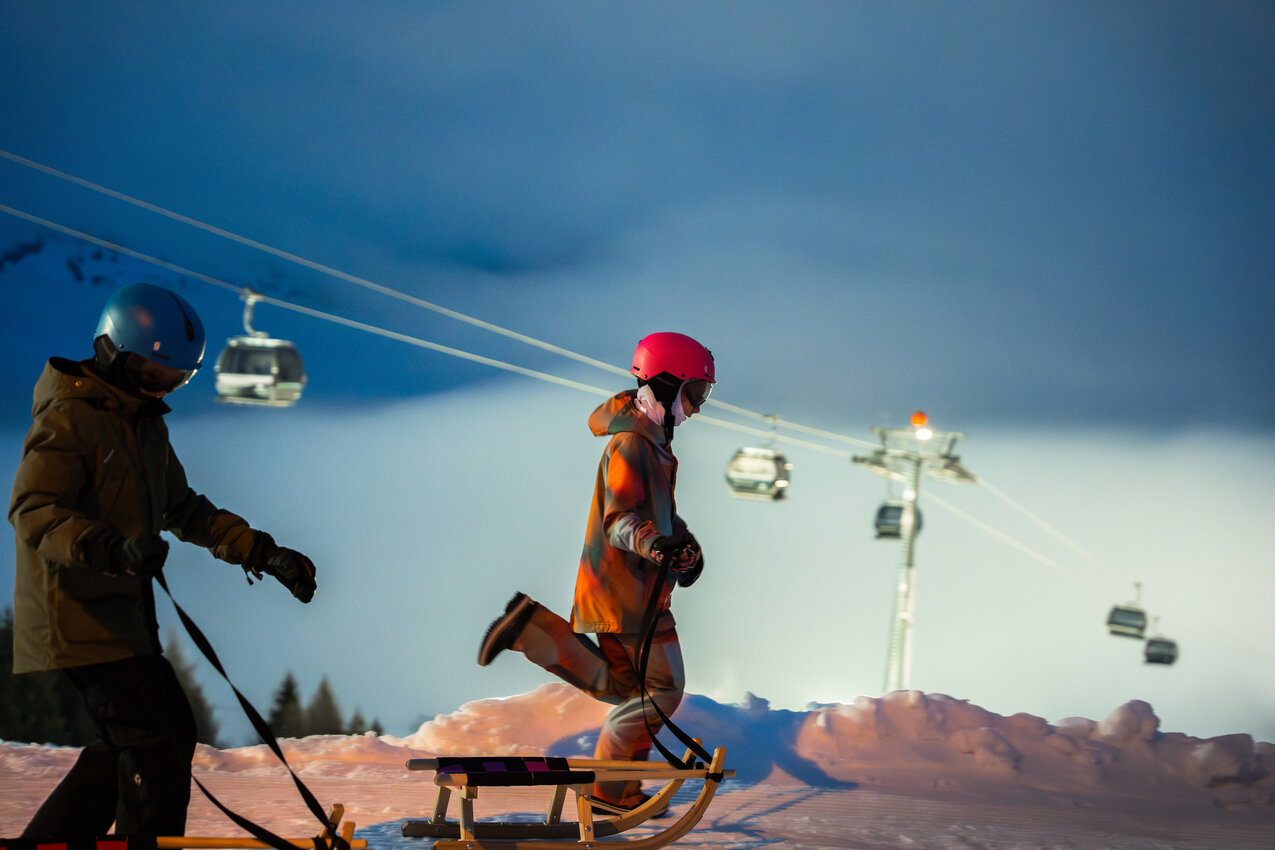 Nighttime skiing gives you the opportunity to make tracks on the freshly prepared piste of the lit middle downhill run. Pure tobogganing fun on the four-kilometer, lit tobogganing trail from Komperdell to Serfaus.