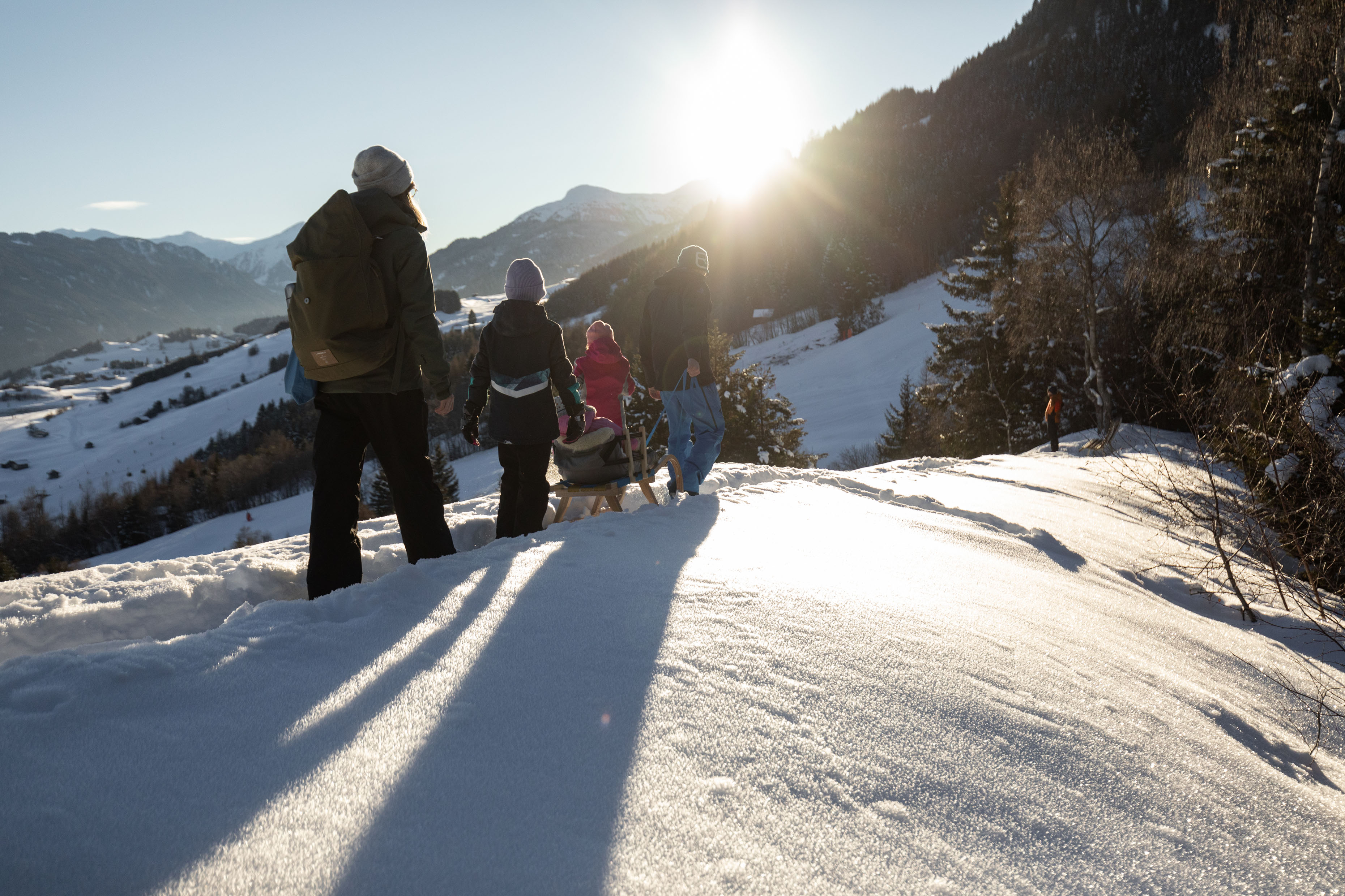 Winter hiking with the family on the Fiss Energy & Senses Trail