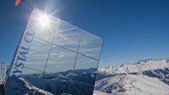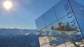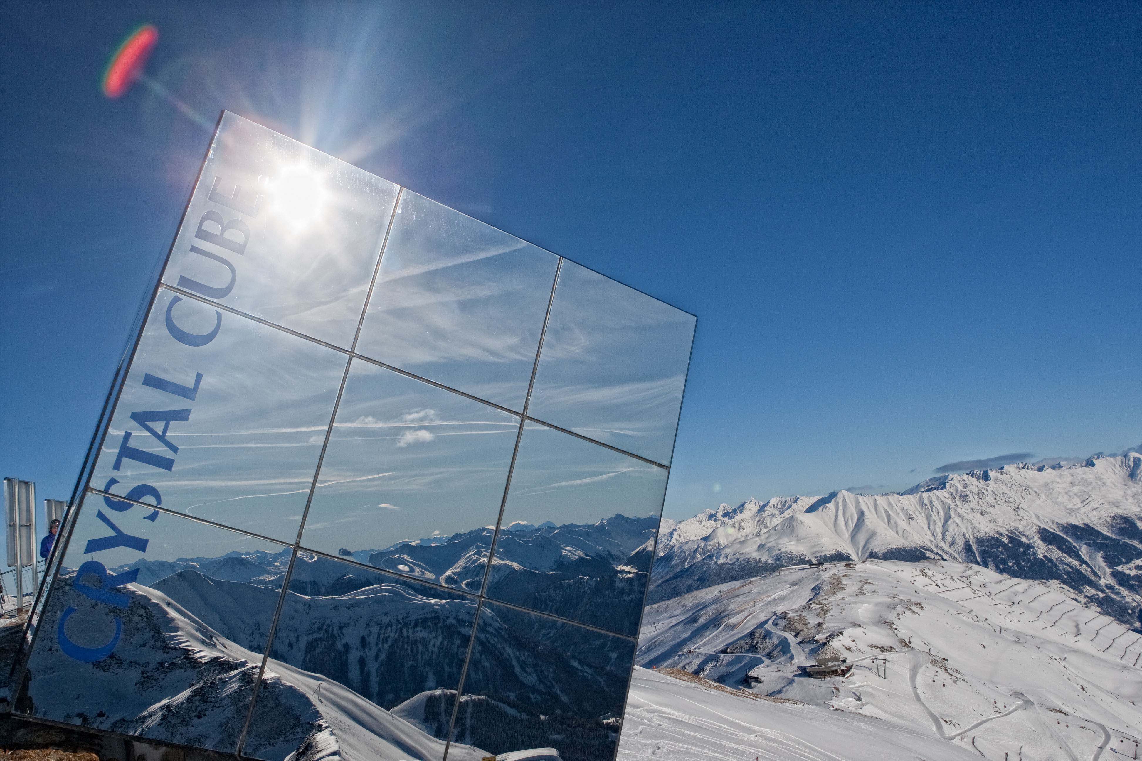 Crystal Cube with skiers