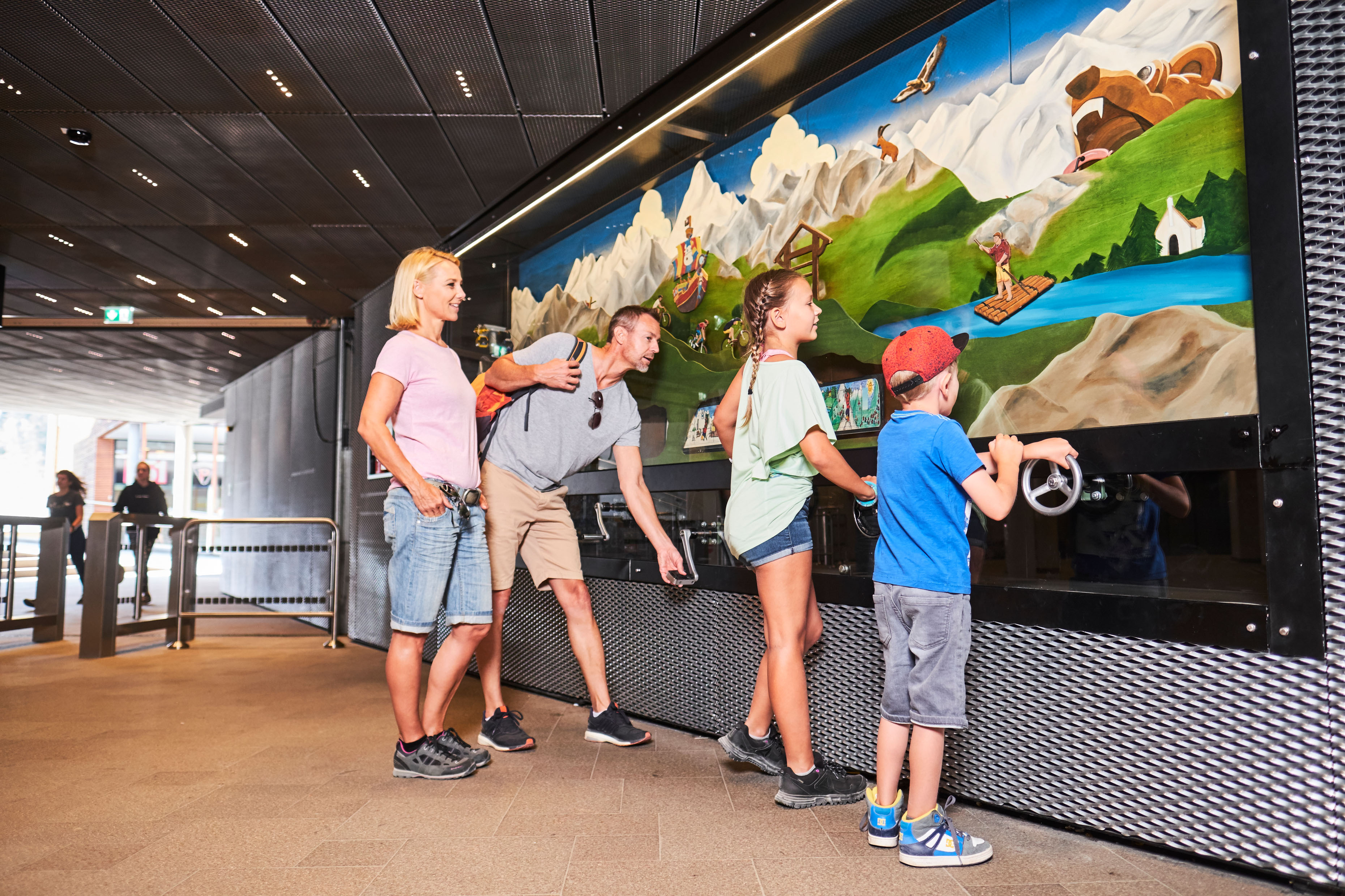At the stations “Seilbahn”, “Zentrum” and “Kirche”, fascinating information about Serfaus awaits passengers. And best of all, there's no shortage of fun to be had. The creative displays at the stations make the wait for the next train go by in no time at all. The “adventure machine” at the “Seilbahn” terminus, for example, was created especially for children and is more than just a static eye-catcher. A fascinating, interactive picture with plenty of cranks and levers invites kids to let rip. Get mascot Murmli to peek out from behind the mountains or move the cyclist along the cycle track. A special area has also been installed for those interested in underground technology, where the story of how the village underground came into existence is told by contemporary witnesses.