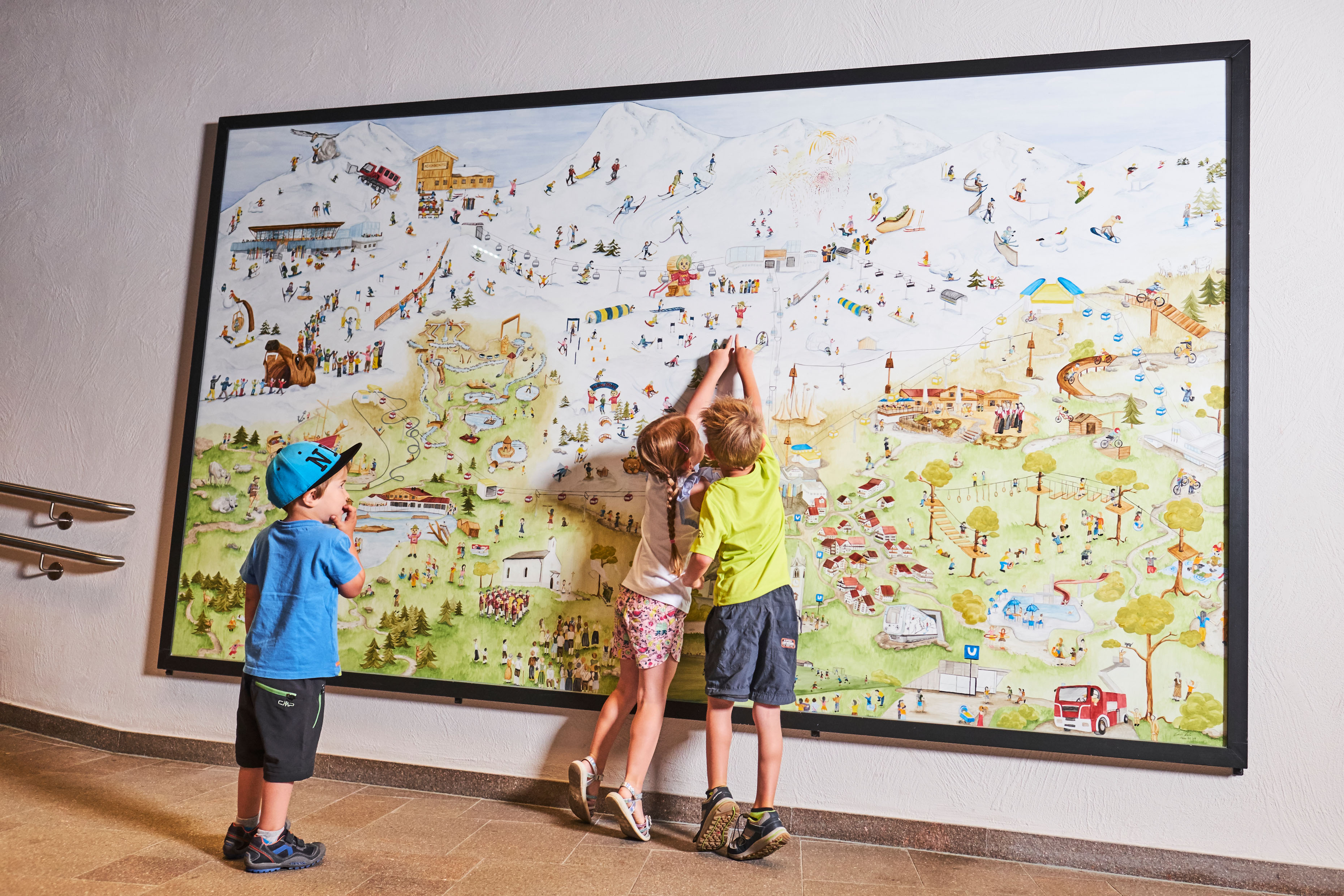 At the station “Zentrum”, passengers learn interesting facts about the vibrant life of Serfaus clubs and associations in pictures and easy-to-understand texts. The overriding theme of this creative “presentation” of the station is “The Serfaus clubs – supporting pillars of the local community”. Six large-format light boxes in the tunnel, which are impossible to overlook, offer an insight into the most important activities of the individual clubs to make any waiting times fly by. Of course, small travellers will also find plenty to enjoy too. A hand-painted “hidden object picture” full of fascinating, detailed drawings encourages kids to take a closer look at club life in Serfaus during waiting times. Watch out: don’t miss the train because of all the fun and games!