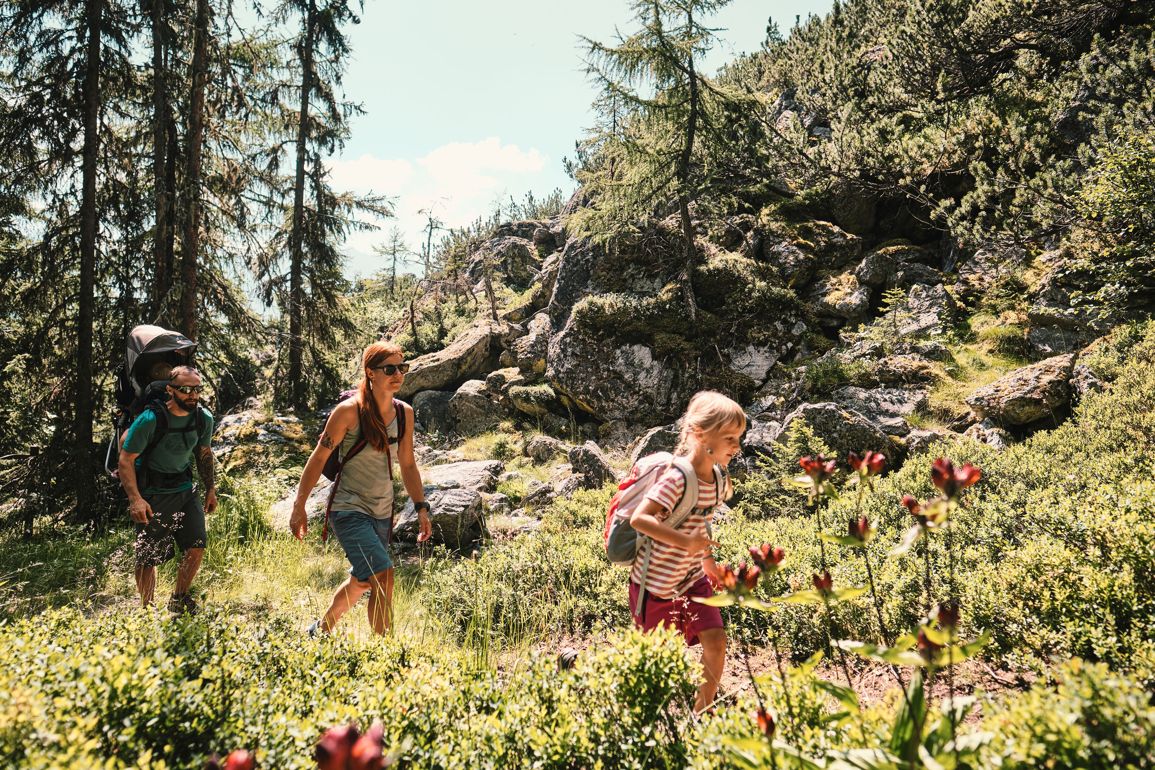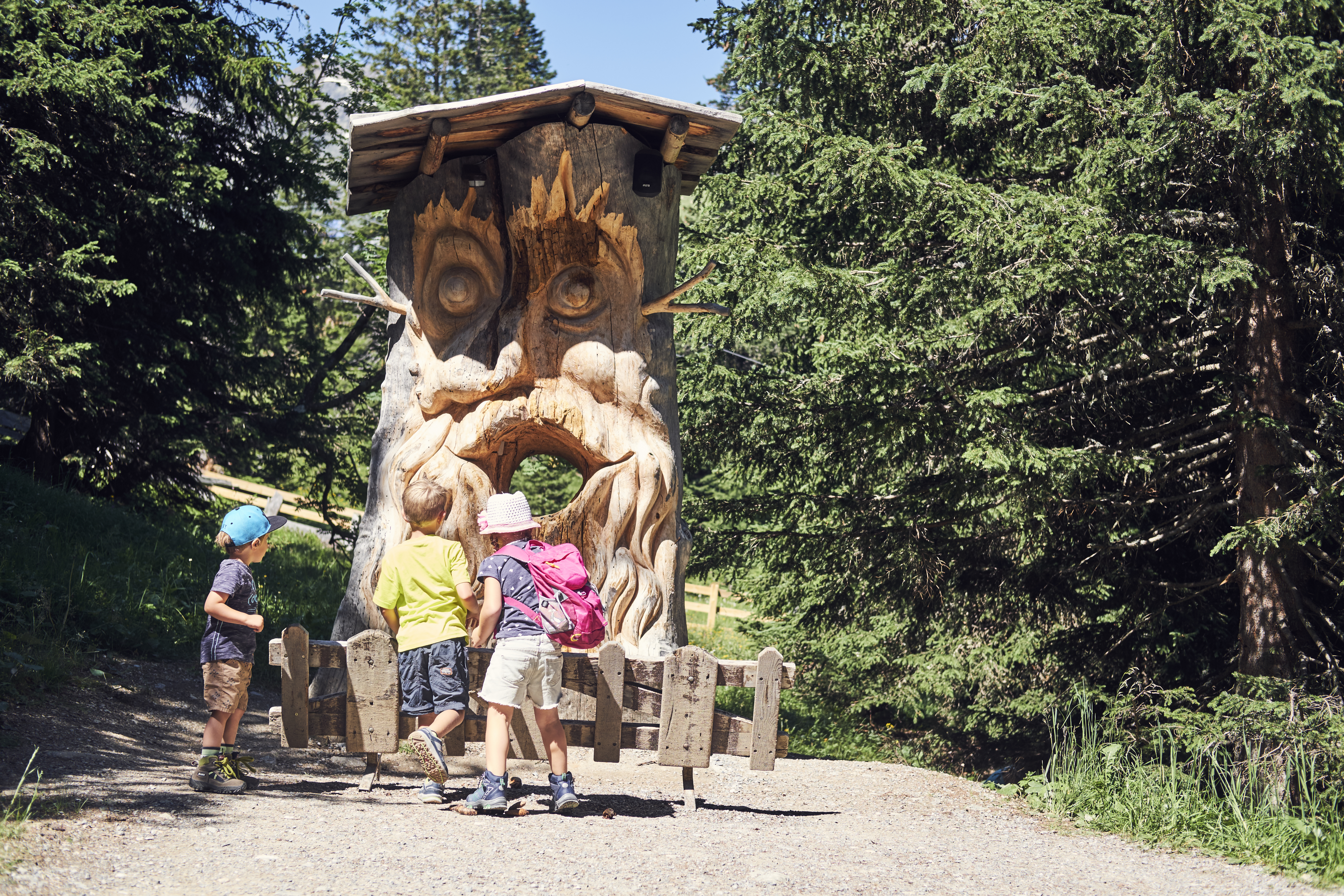 But that’s not the end of the hiking fun: there is so much more to discover on the numerous family-friendly themed trails. They are all designed with great attention to detail to not only reveal the beauty of nature, but also to fuel the imagination. For example, on the Quellenweg, for example, young hikers trace the water to its sources and gain exciting insights into the geology of the area. They visit the Serfaus mascot Murmli on the Murmli Trail, where one adventure after another awaits: sleeping bears, hooting owls, and even Talking Root Men! And who's that jumping around over there? Is that the jolly cow Berta, the mascot of Fiss-Ladis? No! It’s the greedy gnome who you have to put a stop to on the Golden Man Trail using your knowledge of nature.