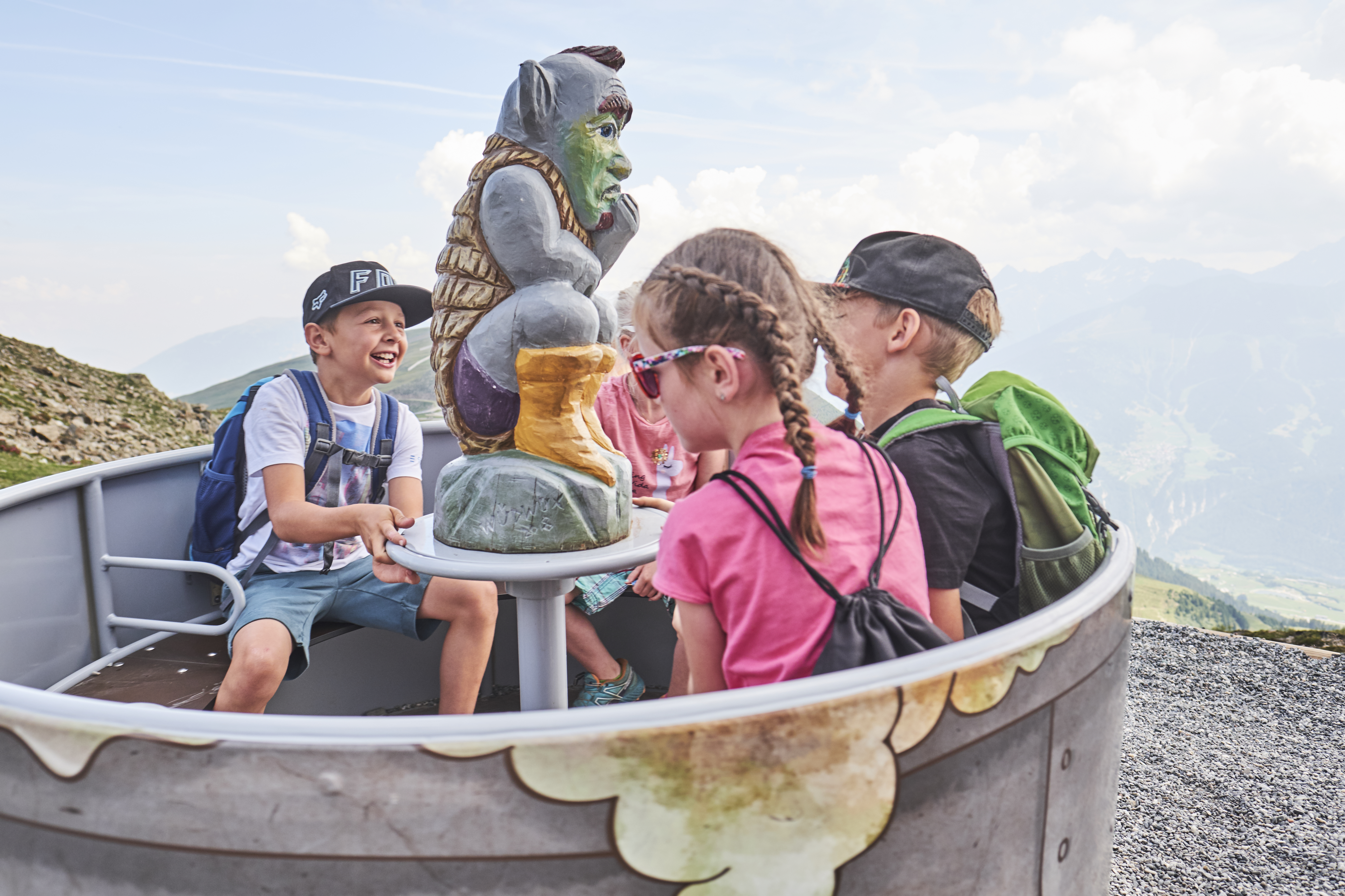 The Ladis World of Myths combines history and adventure. Larger-than-life insects in the Wode Park, the mysterious Wode bath, and the 12-metre-high Wode tower whisk you away into a magical world. If you want even more adrenaline, Summer Fun Park Fiss is the place to be: the Skyswing mega swing, the Fisser Flieger, or the Fisser Flitzer summer toboggan run will get your pulse racing in seconds. Those looking for the ultimate high-altitude thrill can also dare to jump from the 13-metre-high jump tower onto a giant air cushion or head to Serfaus to whizz over the landscape on the Serfauser Sauser Flying Fox attraction. But whether fast-paced or playful – at the end of the day, only one thing remains: happy faces and unforgettable memories.