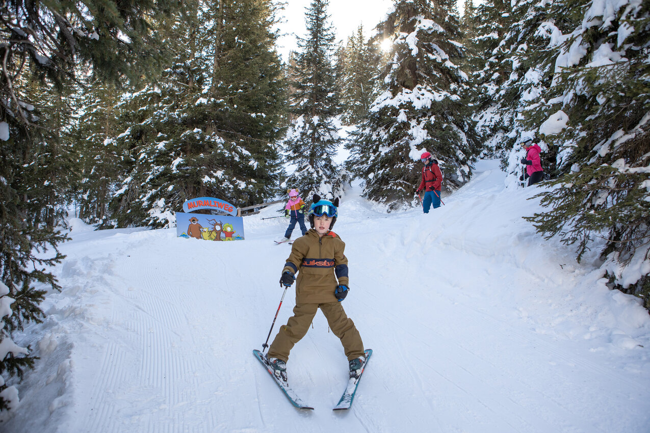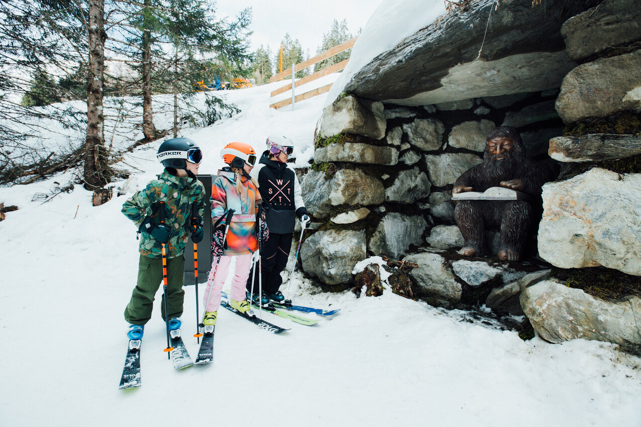 Let’s go on an adventurous journey of exploration into the world of Murmli, Serfaus’ mascot. The interactive adventure trail in immediate vicinity of the Kinderschneealm in Serfaus leads you through a quaint little forest near Familienbahn Gampen cable car. Along the trail, little ski fans can discover seven amazing and creative stations: