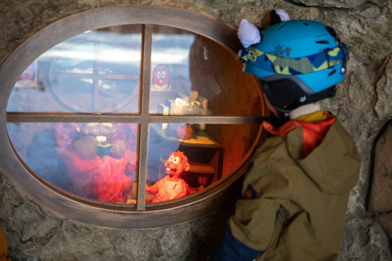 - Story Fountain: Time to take off your skis and enter the cave! A mysterious fountain tells the story of Murmli and his journey through the snow.