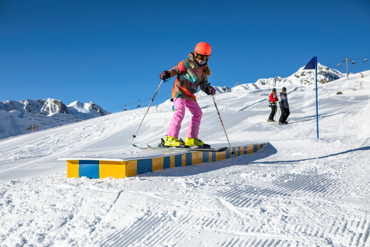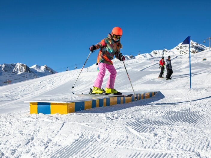 The Fun Slope Serfaus is the second fun area that can be skied after the Snowpark Serfaus. With various elements such as high-five figures, punching bags and mini boxes, the Fun Slope Serfaus offers a varied skiing experience for skiers of all levels. This slope is suitable not only for experienced skiers, but also for beginners who want to improve their skills in a fun way. For freestylers there are various kickers and also some rails, so the professionals and advanced riders are also catered for.