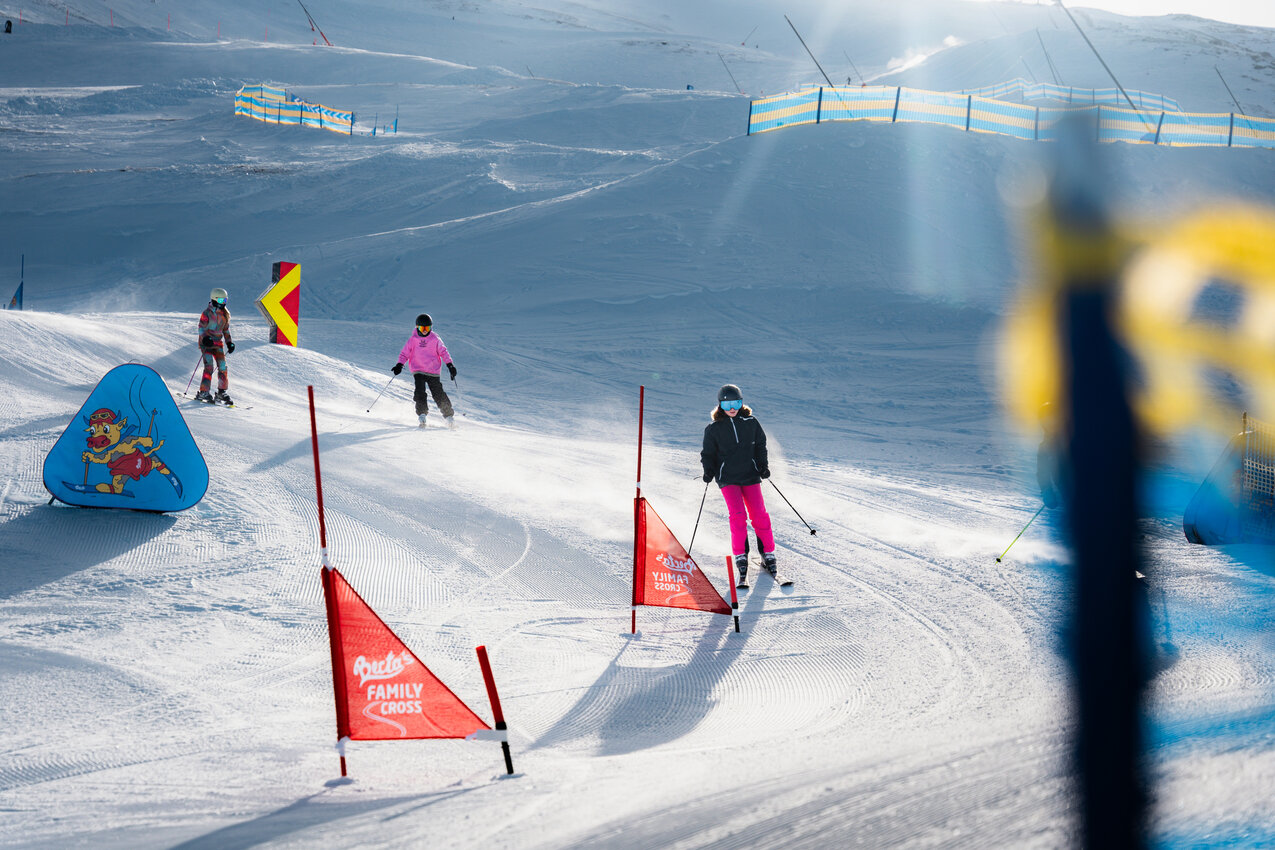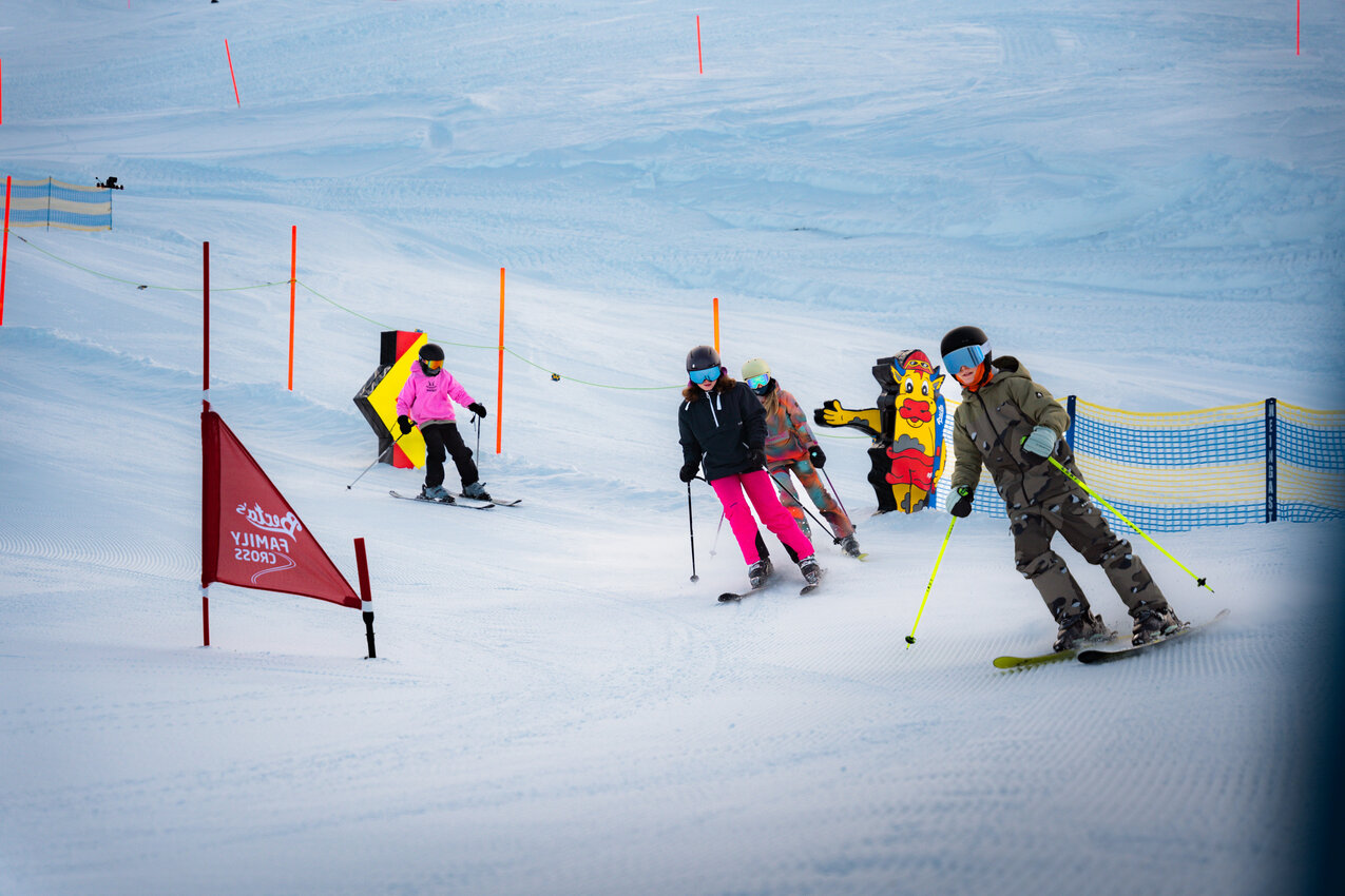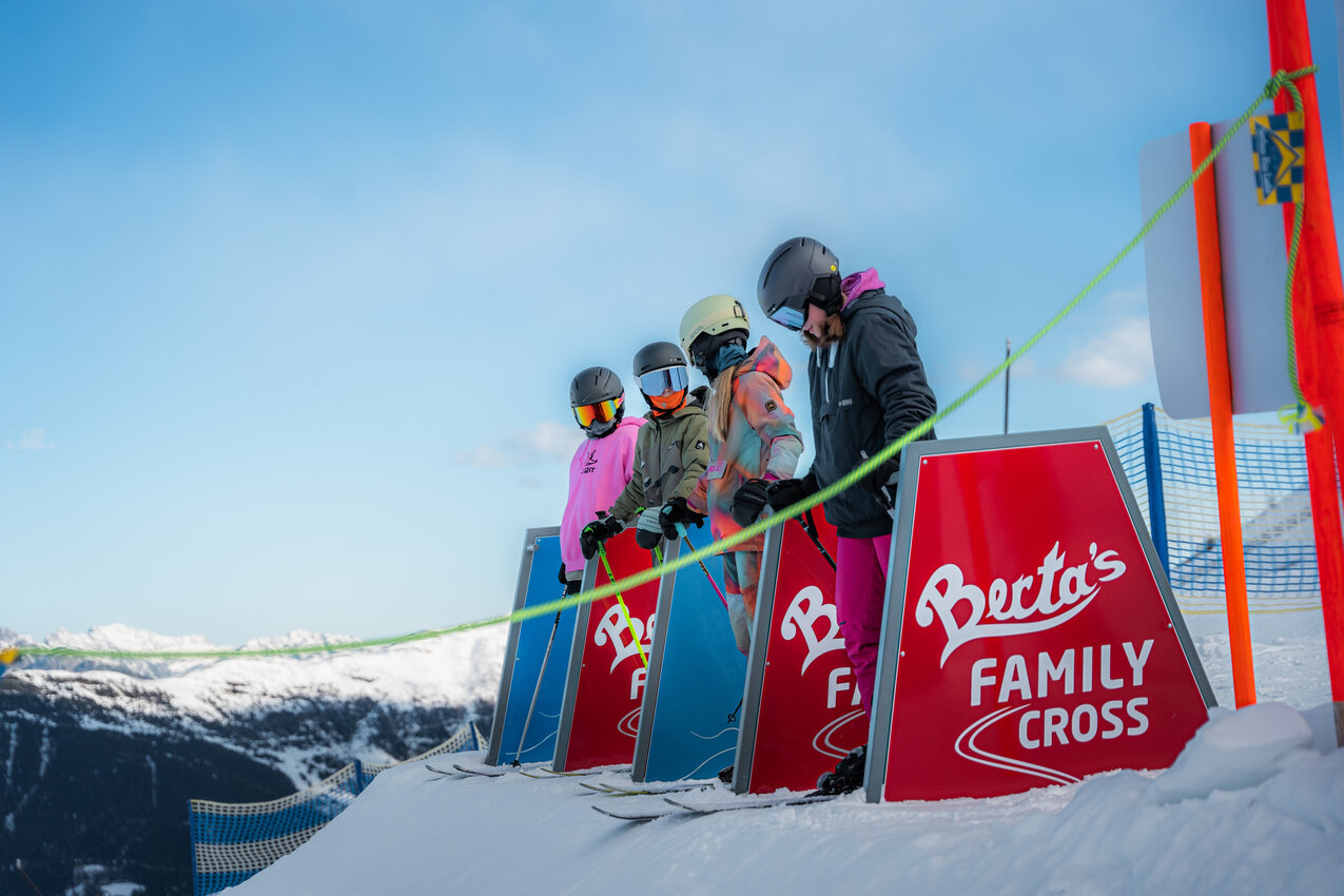 At Berta's Familycross you can immerse yourself in the world of ski cross together. Gentle waves, steep curves and small jumps ensure the perfect amount of action and fun - ideal for beginners and advanced skiers. One thing matters most here: driving pleasure! Whether big or small, the varied route guarantees an adventure for the whole family and offers 4 people the opportunity to start at the start gate at the same time.