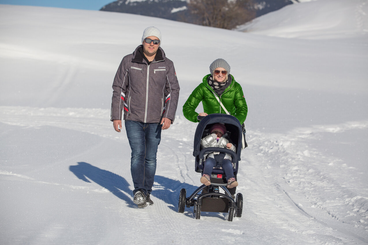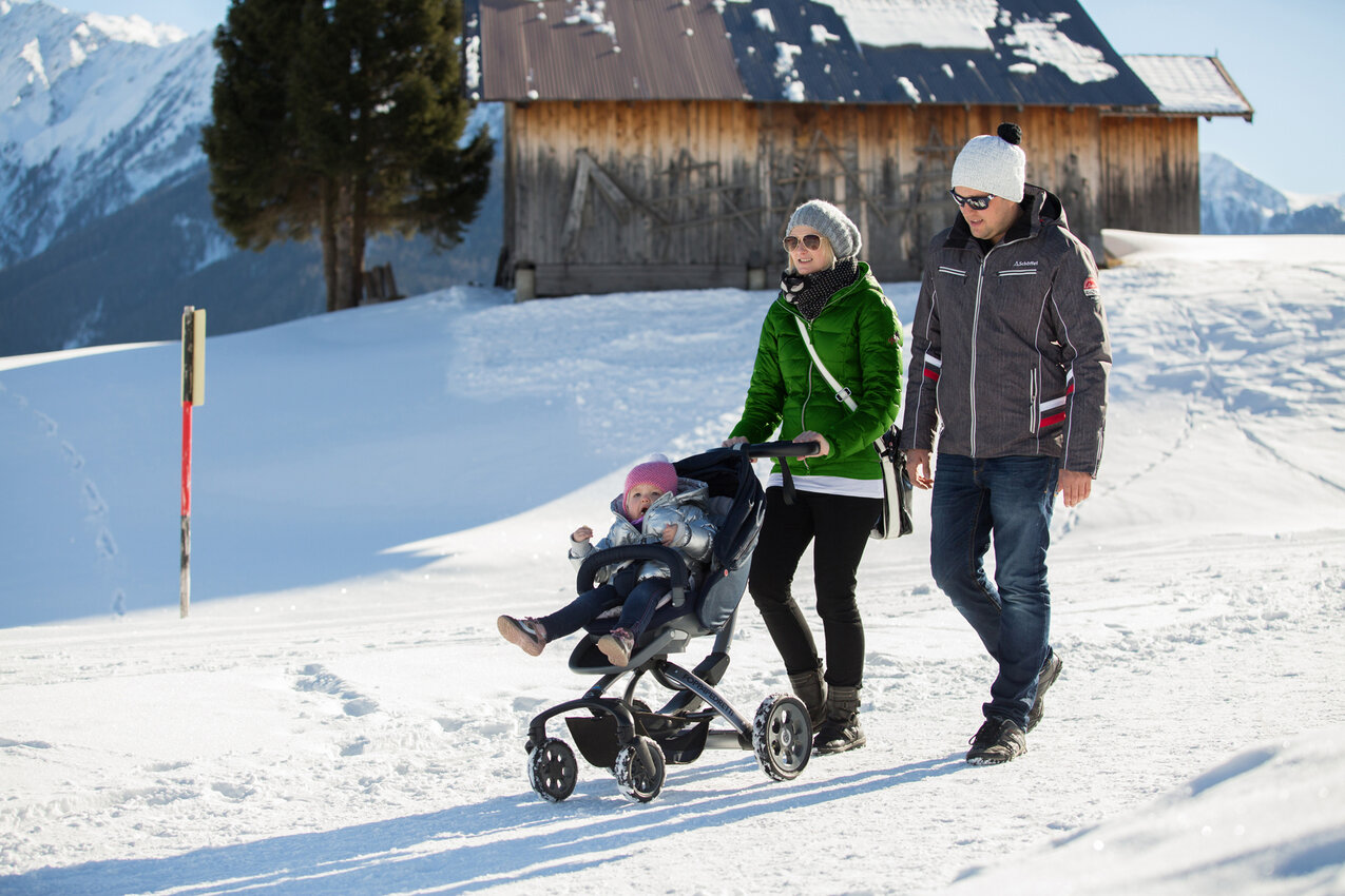 Convenient: Pushing a conventional buggy through the snow can be a tricky endeavour sometimes. Just rent a toboggan with backrest! They’re easy to manoeuvre, making them perfect for a tour through the snowy mountains of Tyrol. Toboggans can be rented in all sport shops.