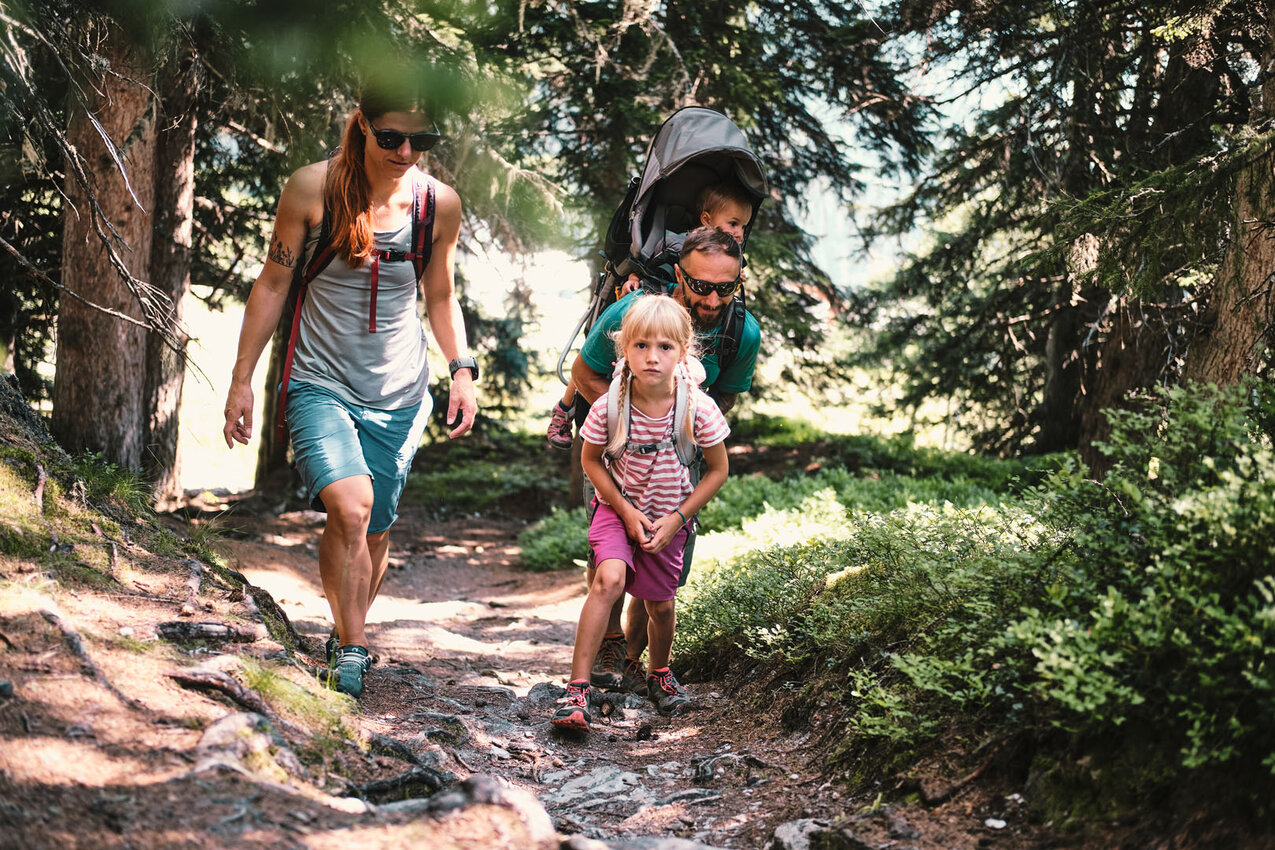 Il cielo azzurro. nemmeno una nuvola in vista, il sole alto: la giornata perfetta per un’escursione con la famiglia a Serfaus-Fiss-Ladis! Percorsi adatti ai passeggini, sentieri tematici interattivi ed escursioni avventurose attraverso i boschi attendono i visitatori.