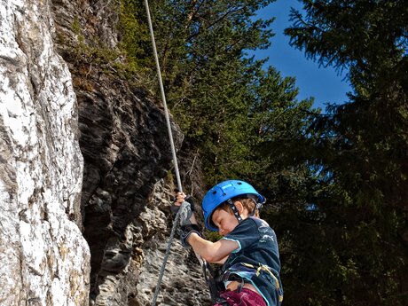Allegre risate risuonano nel paradiso delle vacanze, mentre piccoli e grandi scalatori si lanciano da un albero all'altro come Tarzan e Jane o scalano le massicce pareti rocciose. Che bello che nelle montagne del Tirolo ci siano tante opportunità di arrampicata per tutti i livelli di capacità!