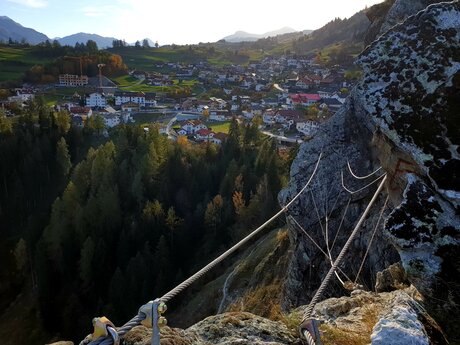 Le ferrate sulla parete di quarzite del Castello di Laudeck offrono agli appassionati delle arrampicate outdoor l’intensa sensazione di tre brevi ma suggestivi percorsi. Le ferrate hanno nomi altisonanti come “Via Claudia Augusta” (blu), Ferrata “Pons Laudes” (rossa) e Ferrata “Laudecksteig” (nera). I gradi di difficoltà delle ferrate vanno da A a D. I percorsi terminano direttamente presso la locanda Gasthof Rauthof. È il posto perfetto dove festeggiare l’arrivo dopo la salita. I rocciatori potranno godere da lì di una vista grandiosa sulla valle dell’Inn. Ma anche il paesaggio montano sull’altra parte della valle, con la rocca di Berneck e la valle di Kaunertal, è semplicemente mozzafiato.