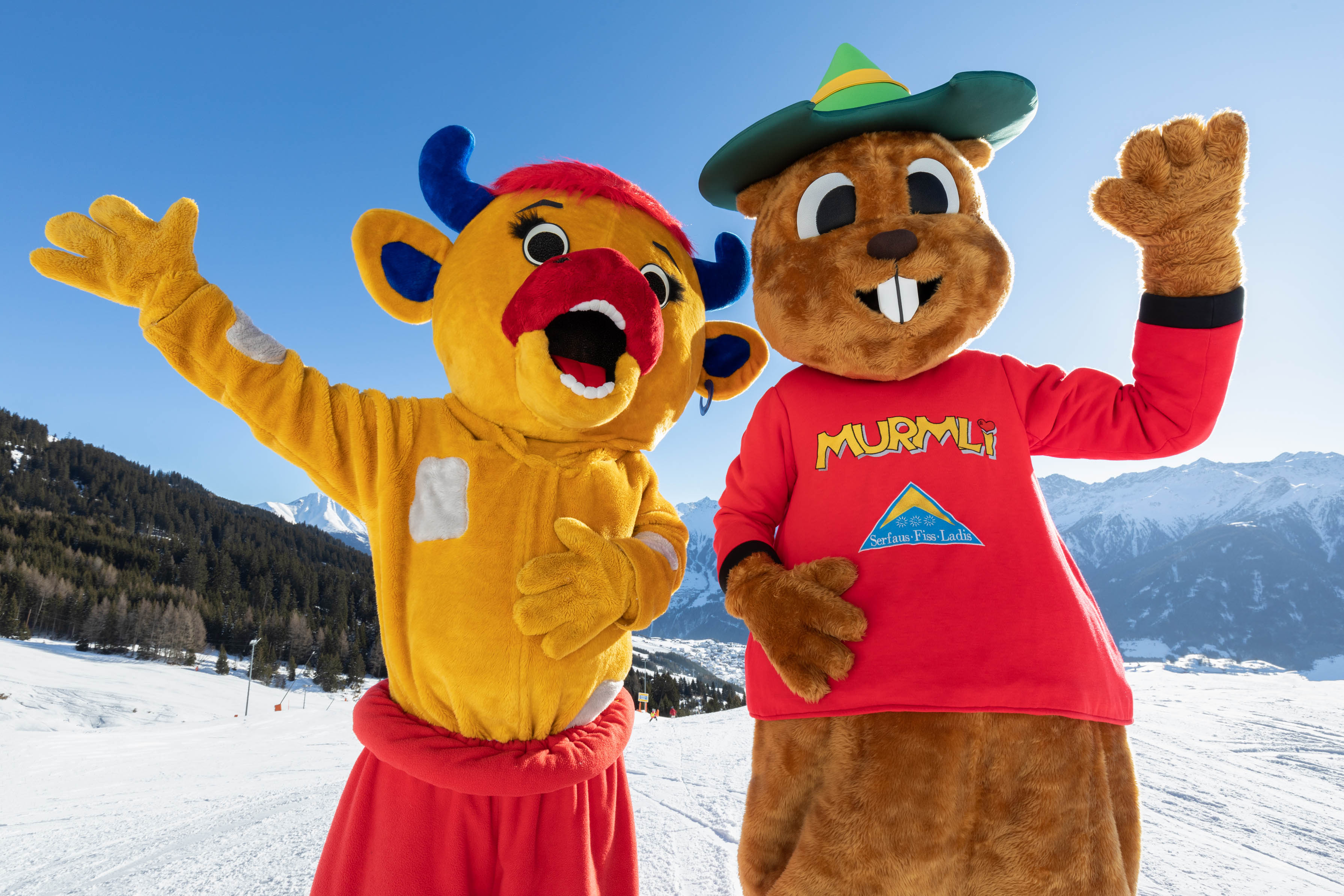 • Twee mascottes staan de kinderen bij: de marmot Murmli in Serfaus en de koe Berta in Fiss