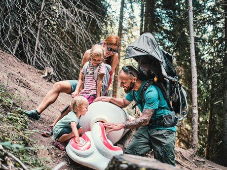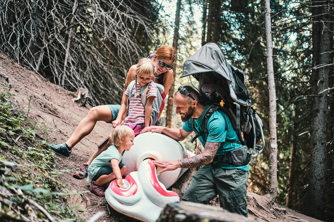 Op het onderzoekerspad in Ladis vinden de ijverige natuuronderzoekers reuzenslakken, mysterieuze sporen van dieren en giftige paddenstoelen.